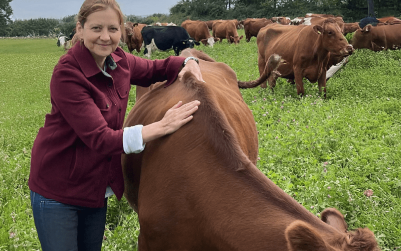 Hemsworth Farm, run by Sophie Alexander, is a 500-hectare organic farm in Dorset, combining arable and dairy farming with a strong focus on sustainability. Certified organic since 2014, the farm prioritises soil health, biodiversity and regenerative practices. In 2020, Sophie introduced a herd of 300 Viking Red heifers as part of a broader effort to enhance ecological balance, improve soil fertility and support the long-term resilience of the farming system.