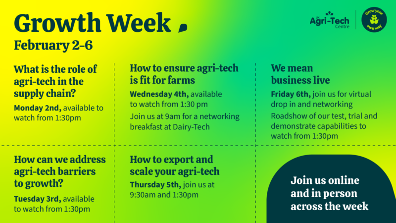 This February 2-6, the UK Agri-Tech Centre invites you to join us for an exciting week dedicated to helping agri-tech businesses thrive. Whether you’re looking to scale, export or simply connect with industry leaders, this week is packed with opportunities to learn, network and take your business to the next level. Our Growth Week programme combines in-person events, virtual networking and expert-led discussions designed to tackle the challenges and unlock the potential of agri-tech innovation. From understanding the role of agri-tech in the supply chain to exploring international markets, we’ll provide insights and practical steps to help you succeed.