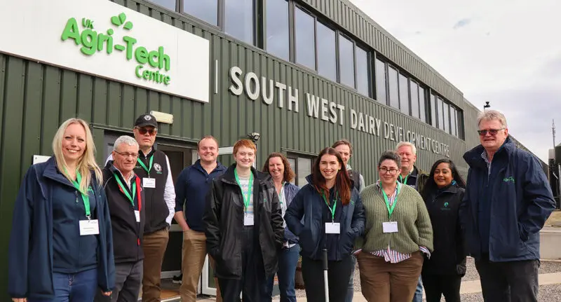 The UK Agri-Tech Centre’s South West Dairy Development Centre (SWDDC) offers state-of-the-art facilities for research, development and demonstration. With a focus on optimising productivity, the centre gathers more data points on individual cows than any other herd in the country to trial agri-tech and new approaches, all while upholding the highest standards of animal health and welfare through technological integration. SWDDC is home to Steanbow Farms’ herd of 200 dairy cows, which makes up an all-year-round calving herd. The data points collected at the centre give a holistic view of the impact that emerging technology has on cow health, welfare and production. Herd fertility at the centre is excellent, which is reflected in current fertility KPI’s with a submission rate to AI at 80%, current conception rate at 45% and an above industry standard pregnancy rate of 35%. The cows make their own decisions on when to eat, sleep and get milked, which leads to a calm, contented herd and an efficient system that helps to enhance cow health and welfare. Mike Jones, Dairy Technical Manager at the UK Agri-Tech Centre, compares the barn and herd to a “happy family on a cruise liner holiday”. The precision grazing system at the SWDDC is a model of efficiency, managing grazing with cow tracks, electric fenced paddocks and a grazing gate across a 42-hectare (104-acre) platform. SWDDC boasts the UK’s first fabric-roofed building, featuring a translucent roof material that transmits 20% of natural light and lightweight steel uprights. A significant upgrade in 2022 saw the relocation of robots to enhance operational efficiency. An upstairs meeting room allows visitors to observe the herd from above, watching them being fed automatically and seeing the cows in a relaxed and calm state. The facility provides an unparalleled environment for developing, testing and demonstrating new technologies and techniques. It supports sustainable, efficient, high-health and welfare and cost-effective milk production. The centre is involved in various innovative projects, including: In 2024, the centre welcomed 1,039 visitors who witnessed firsthand the power of robotics and sensor technology combined with state-of-the-art housing and precision grazing. To learn more or get involved with the South West Dairy Development Centre, contact Dairy Technical Manager Mike Jones at [email protected].